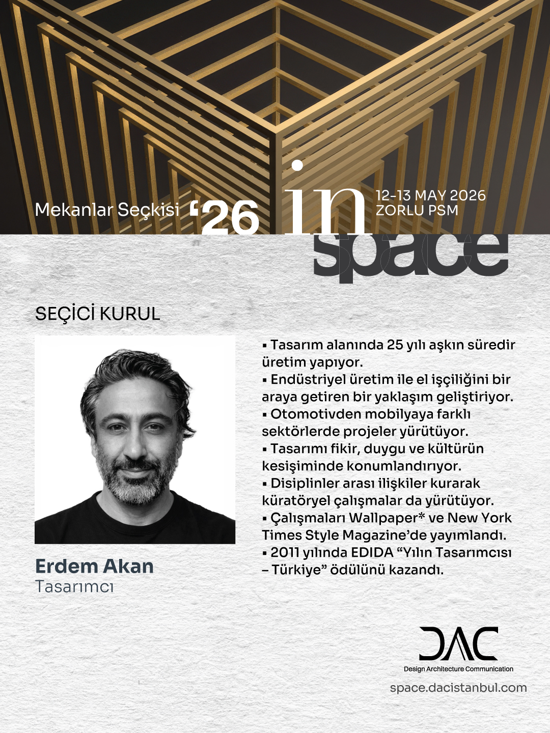 uluslararası arenada takipçisi olduğumuz mimar ve tasarımcıların konuşmaları, in SPACE özel seçki sergisi ve SPACE dijital sergisi,